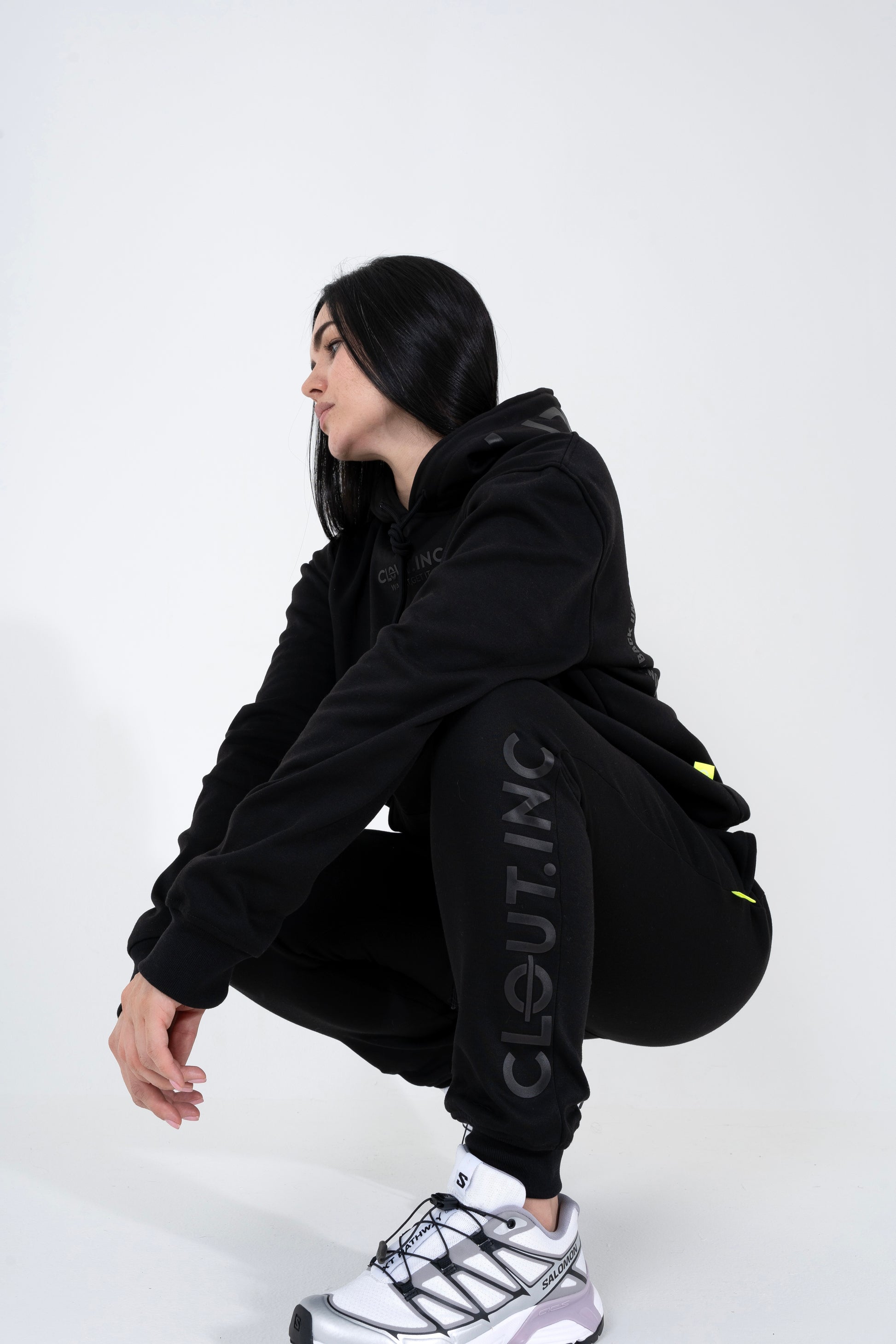 Hecho en una mezcla de 80% algodón y 20% poliéster, este set ofrece suavidad y calidad en el producto. Su diseño funcional incluye un bolsillo tipo canguro, puños y fajones tejidos para un ajuste cómodo que entrega mayor estructura a la prenda, y un elegante banderín bordado con el logo de Clout.inc en un lateral, añadiendo un toque distintivo. Tambien, cuenta con estampados en alta densidad en el frente, la espalda y la capucha del buzo al igual que en el jogger. Es un conjunto de unos diario que se puede combinar con las diferente referencias de la marca.